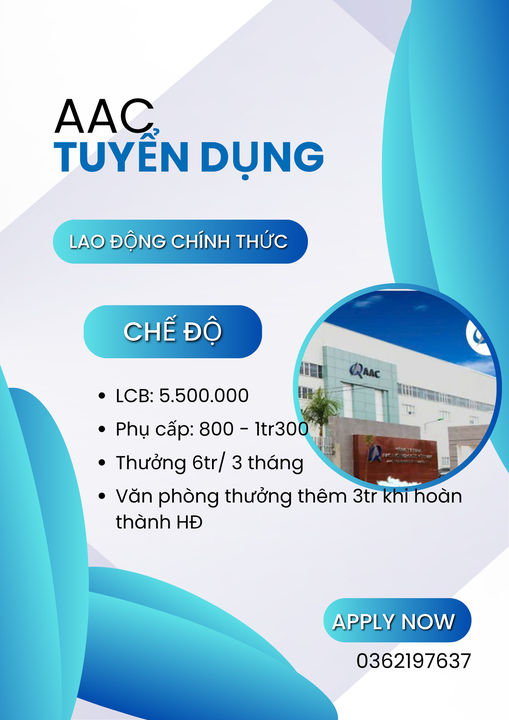 Công ty AAC chính thức tuyển dụng công nhân sản xuất